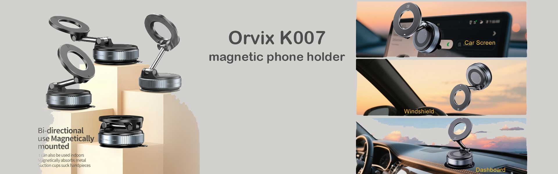 Orvix Magnetic Car Phone Holder – Toggle Suction Lock, Adjustable Reach